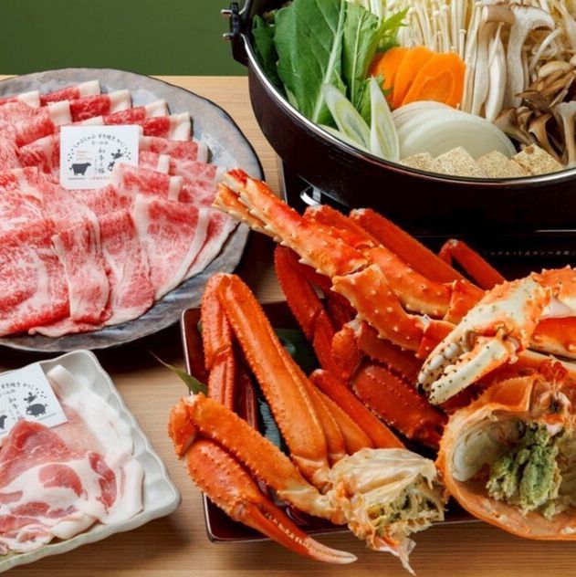 A5ランク薩摩錦牛や南国麦豚、ズワイガニ・タラバガニを、心ゆくまで堪能できます。